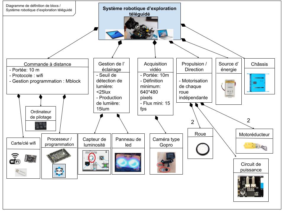 A partir du diagramme ci dessous et des informations collectées précédemment, retrouver les solutions techniques permettant de satisfaire