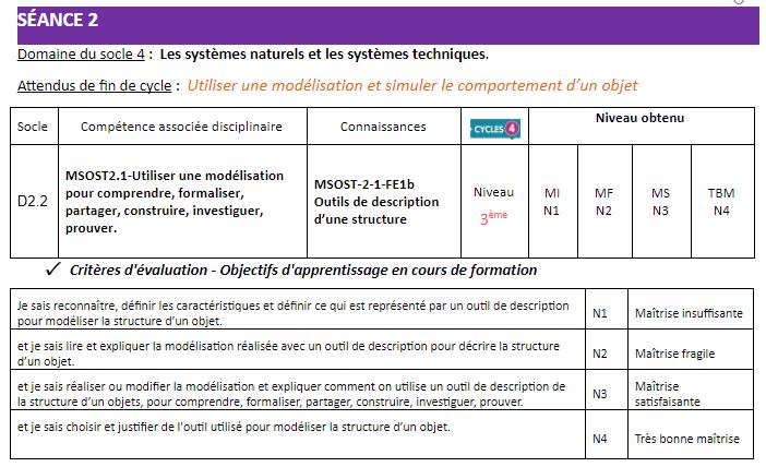 Compétences et critères d'évaluation associés