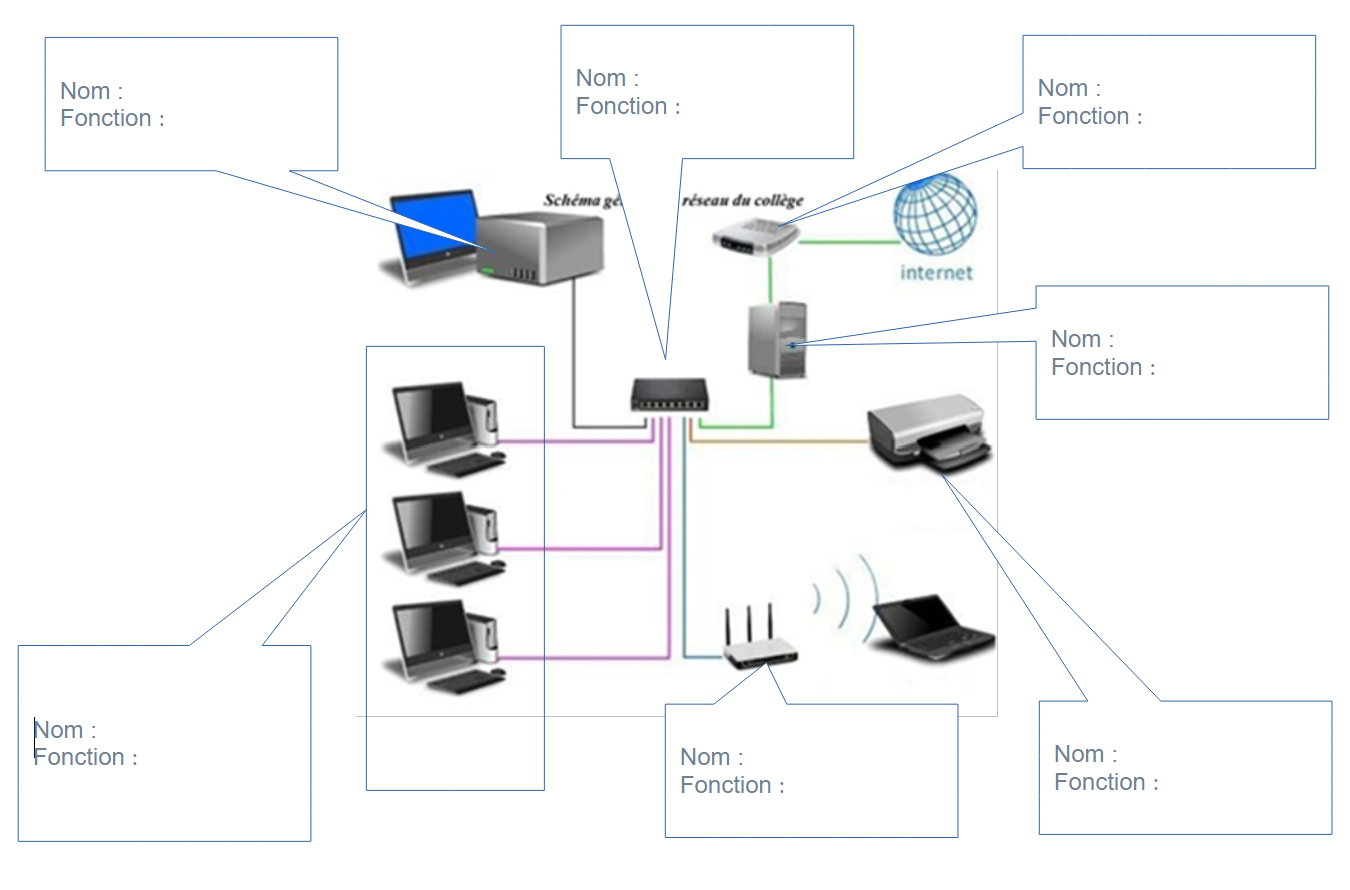 les différents dispositifs constituant un réseau informatique, et expliquer leurs utilités.
