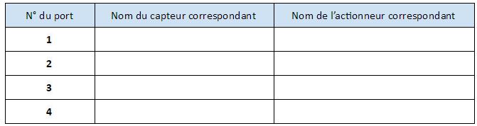 A partir de la vidéo ci dessous, complétez le tableau d'attribution des ports ci dessous correspondant à votre robot